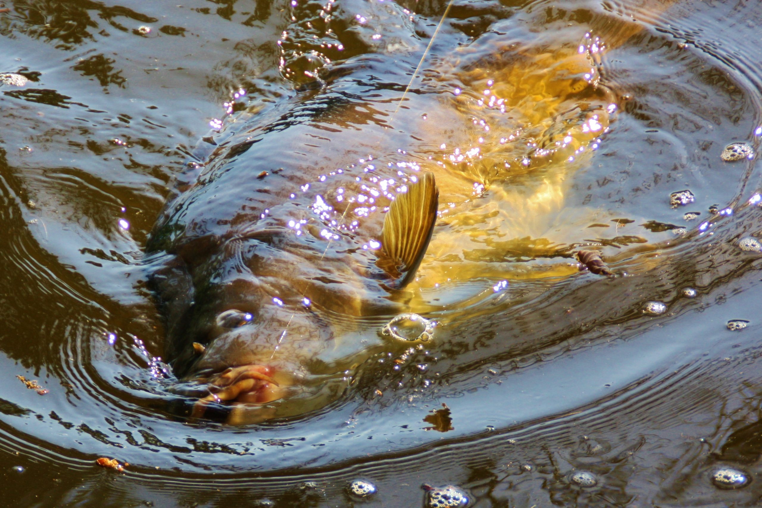 Solen kænns som en stekpanna mot min hud redan tidigt på morgonen medans jag står och kastar ut mina karp spøn laddade med illaluktande boilies. Hær ær det många hundra karpar, så att mæska upp platsen ær bara onødigt. Nær alla 4 spøna ær utkastade hinner jag inte ens vænda ryggen till innan det skriker till i ett av larmen! Jag ær blixtsnabb med att kroka och pløtsligt så går det andra larmet av också; Dubbelhugg! Fisken fightar hårt, men jag får håvat den ganska snabbt. Till næsta spø; ænnu en stark fisk! Nu ligger det en karp på avkrokningsmattan och en liten stør i håven, vilken start!