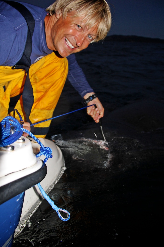 Every other hour or so we had to reel up and change the bait. Lice, smaller sharks and hagfish pick on the bait, and we need to keep it fresh. It takes around 15-20 minutes to reel up from 700 meter deep, so its quite a job to make sure the Greenland Shark constantly has fresh bait to find.