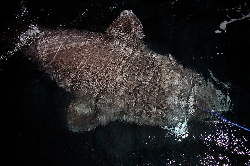 After 1.5 hours of fighting with the ancient creature lurking at 700 meters, a giant Greenland Shark surfaced. Measuring it quickly to 4,66 meters long (adjusted to minimum 4,49 after the video was shot) and 2,66 meters wide.
