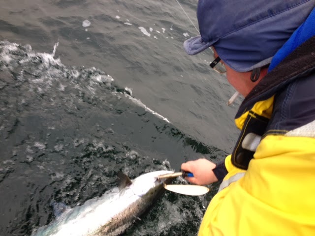 Etter først å ha avkroket 5-kiloslaksen ved båten går det i ett resten av dagen. Først kommer det ett 4-hugg hvor en 5-kilos uten fettfinne beholdes og resten avkrokes ved skutesida. Deretter kommer det et 10-hugg med en laks på 11 kilo på topp, og flere i retur. Så kommer det ett trippelhugg, deretter ett nytt 4-hugg. Dagen avsluttes med ett 8-hugg, hvor fem av laksene er over 10 kilo, og den største laksen på 12,5 kilo. I tillegg kommer alle enkelthuggene som skjer innimellom alt det andre.