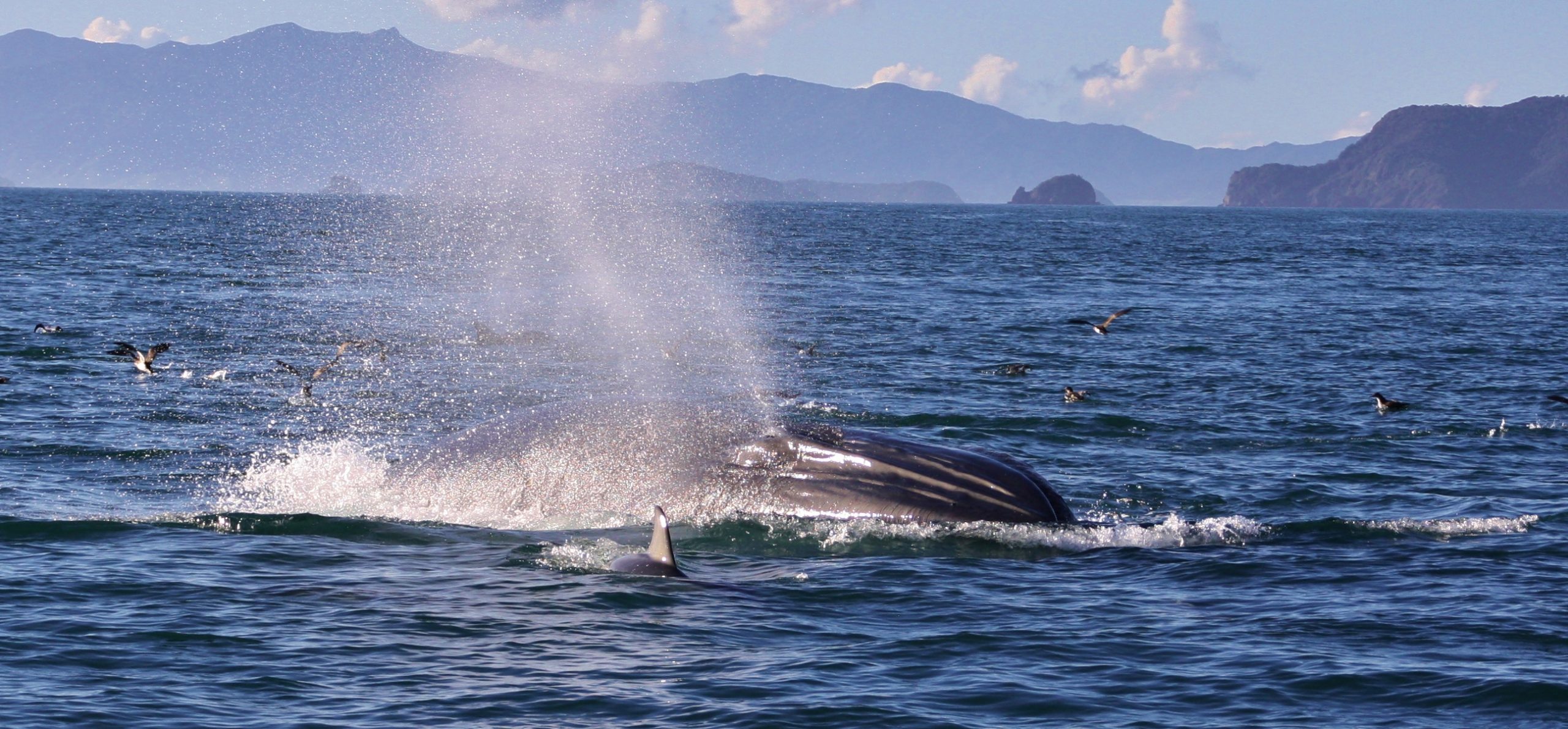 Huggperioden avtar och delfinerna førsvinner bort mot horisonten. Kaptenen startar motorn och føljer efter. På næsta stopp kryllar det av både valar, delfiner och fåglar; vilket skådespel!