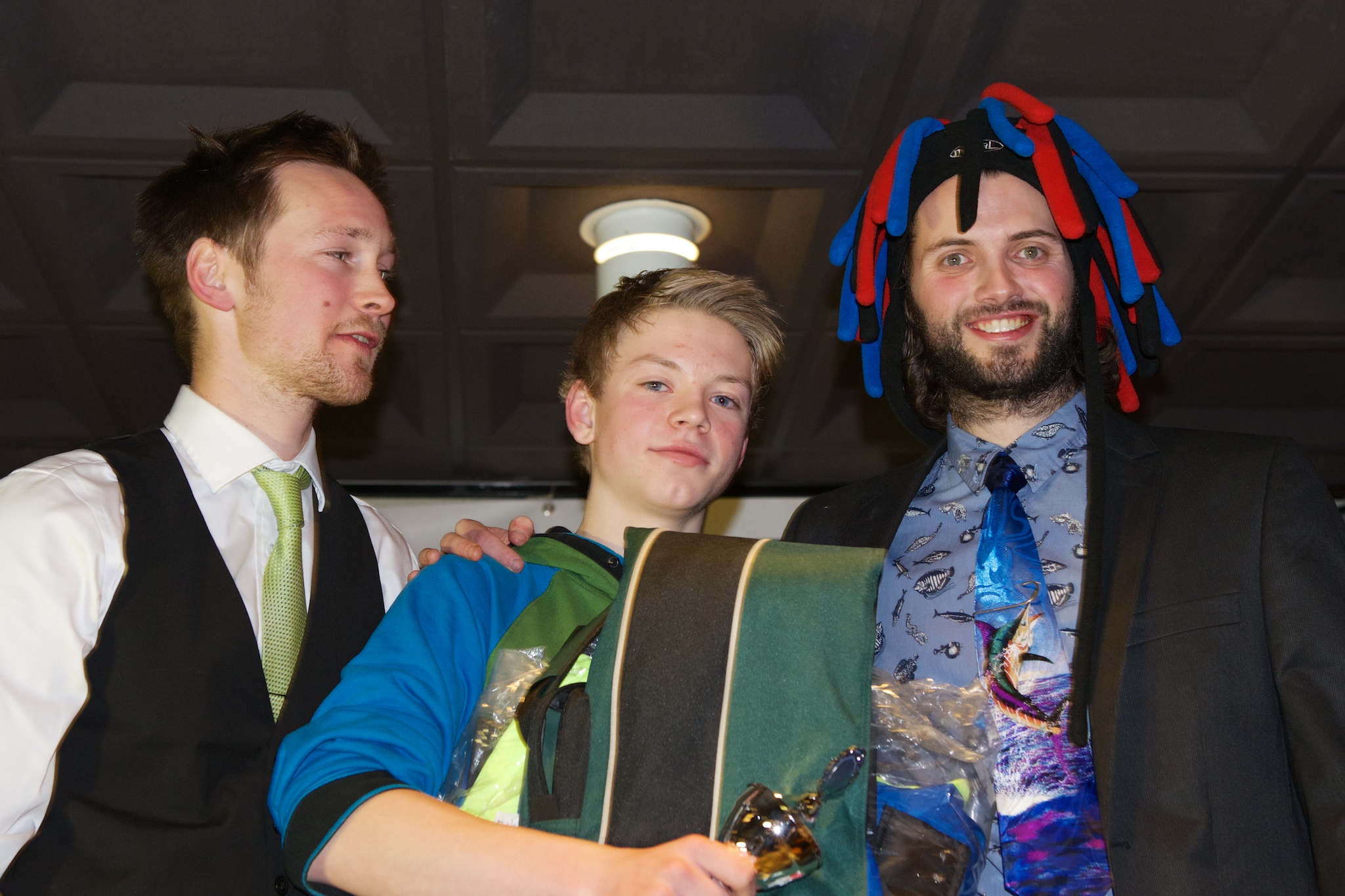 Om stemningen på isen var god, ble den ikke noe dårligere oppe på Sjøåsen fjordhotell seinere på kvelden. I en fullpakket sal ble det delt ut plaketter med gode skryteretter, meget feite premier og ikke minst heder og ære.