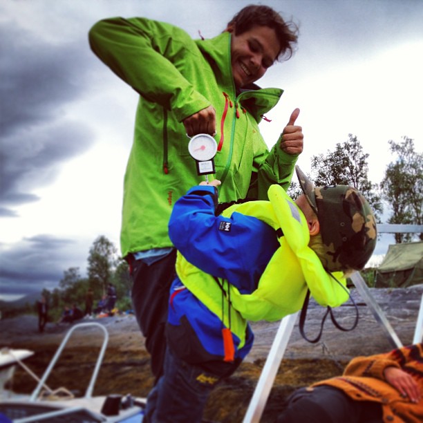 Jeg kjører fisken hardt, og gir ikke ved dørene. Litt avhengig av forholdene er en tommelfingerregel at det skal ta et minutt pr kilo laks å få den på land, men dette er svært individuelt. En ting man uansett alltid gjør er å sjekke bremsen på forhånd FØR man begynner å fiske.