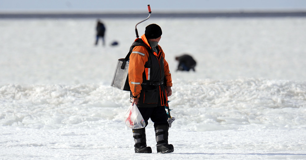 Det meste atlūzušajiem isblokker i isen fiskere og is har blåst flere hundre meter fra land.