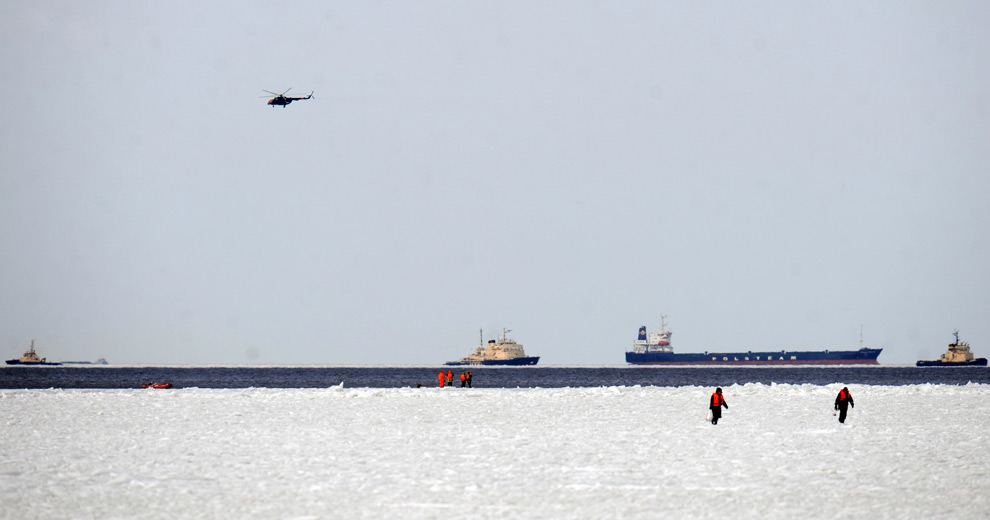 Vakarbuļļi kontrast, er situasjonen mer komplisert – vasket bort av havisen er ca 500 personer. Senere viste det seg at antall mennesker blåst ut i sjøen er mer enn halvparten – to hundre og tjuetredje Redde folk som er involvert i de nasjonale væpnede styrker, Kystvakt og National Guard. Tiden blir vurdert som en mulig ilandføring av disse menneskene.