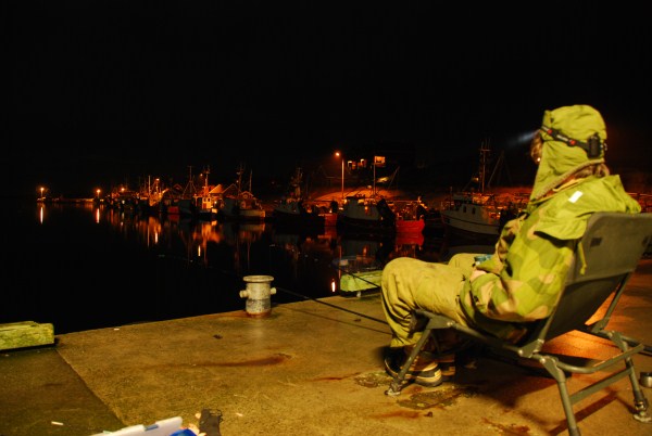 Etter hvert kom også de andre gutta, da dette var lokaliteten der vi alle skulle gjøre vårt siste havålforsøk for denne gang. Da jeg hadde testet nok på kaia og i nærområdet rundt der, rykket jeg ut på plassen der jeg skulle tilbringe kvelden mens det fremdeles var lyst. Det var en spennende kant der og andre bunnforhold enn ved kaia, så det var artig å prøve litt etter andre arter mens lyset fremdeles var til stede. Og det ble snart klart at lyren trivdes i området. Etter et par missede run kunne jeg lande en lyr på 1070 gram (en grei forbedring på «52-52» fra den forrige lyren på minimale 64 gram). Det ble dessverre ikke mer lyr på land, på tross av ytterligere to run før mørket kom.