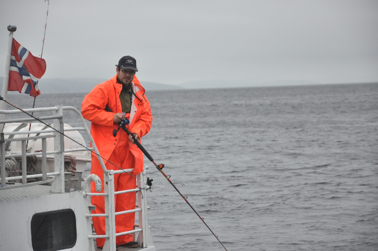 Klokka 2032, etter at vi hadde forsøkt oss på flere plasser og bare fikk småtorsk (unntatt brosma), kroket jeg en fisk som verken kjentes ut som brosme eller torsk. Etter å ha sveivet opp fisken fra 70 meters dyp og kjent de karakteristiske bevegelsene hele veien opp, var jeg lite overrasket over hva jeg kunne notere som art nummer 3:
