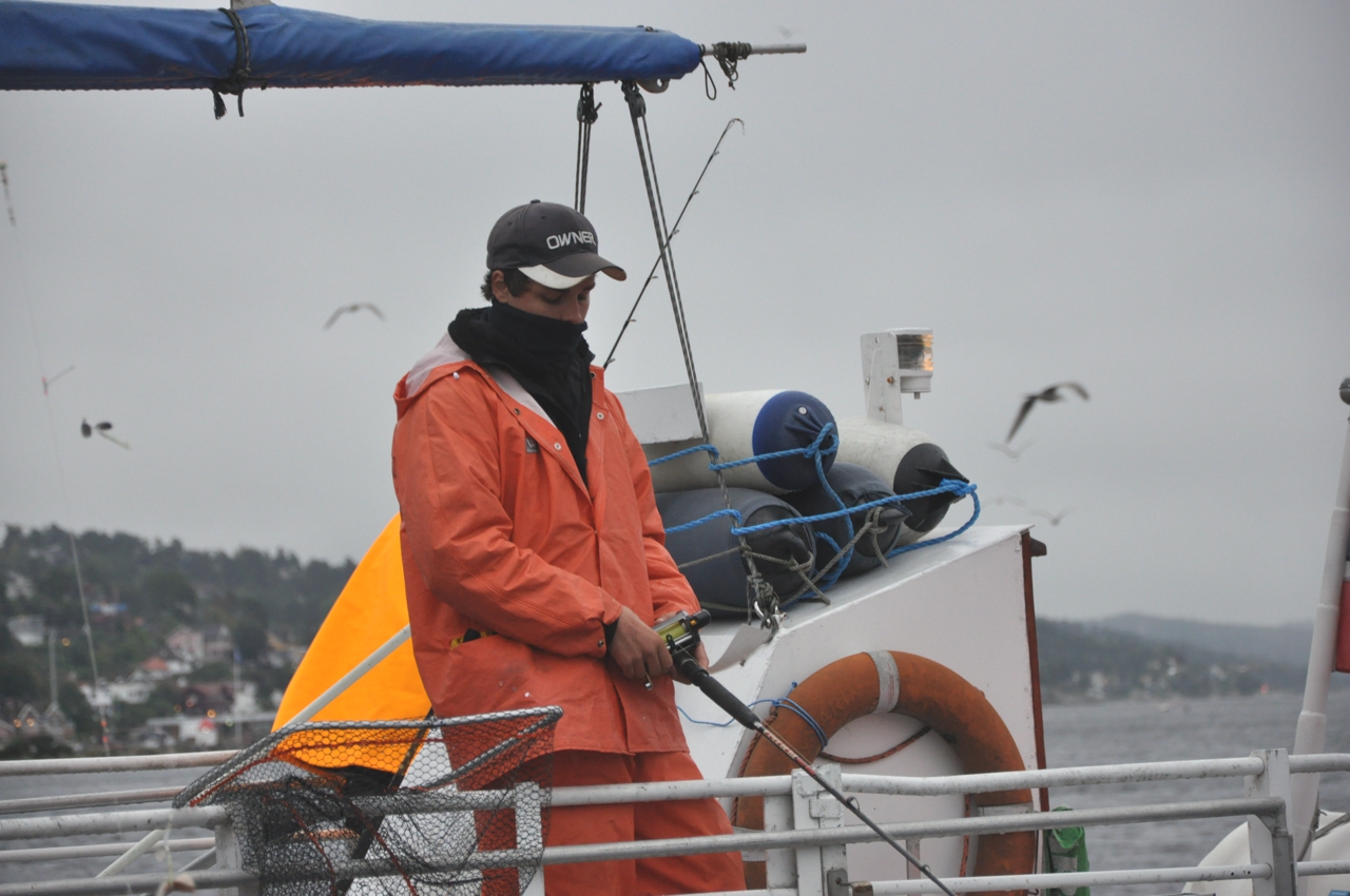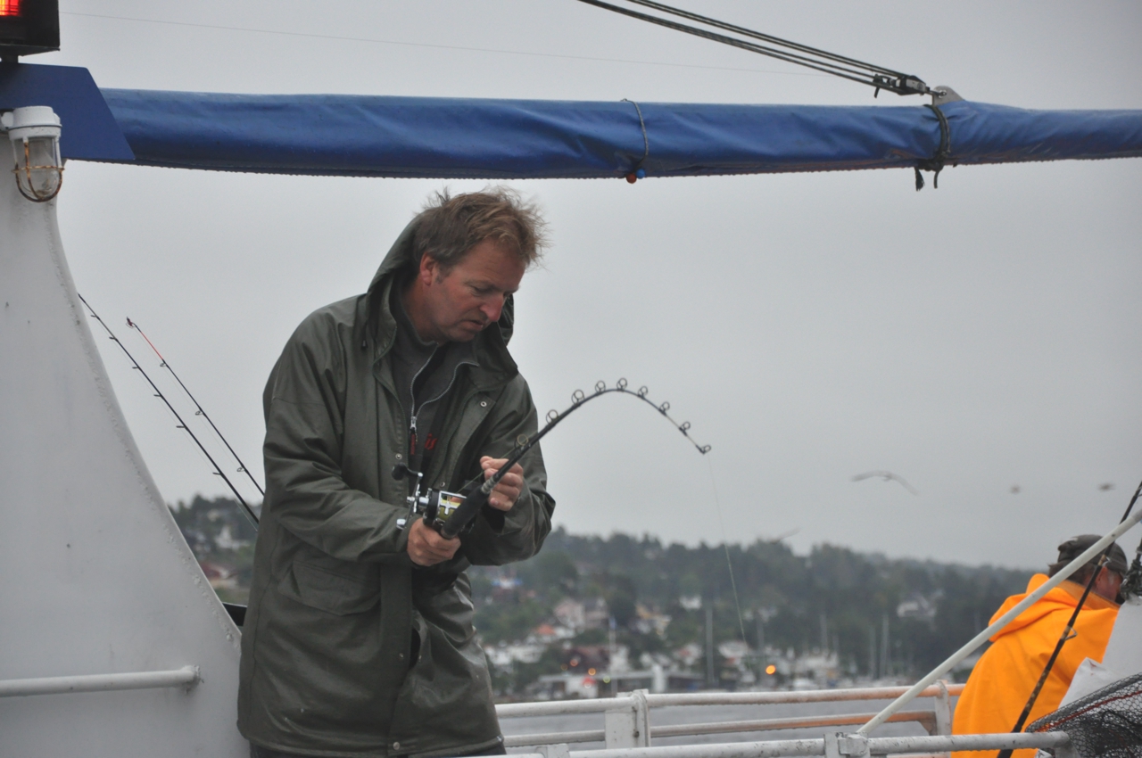Plassen vi fikk hysene på den første dagen viste seg å være riktig så pålitelig. Det fikk vi også bekreftet av en lokal fisker som dukket opp to påfølgende kvelder utover i uka og slo av en prat med oss fra fiskebåten sin. På ekkoloddet kunne vi se at vi drev over store stimer med fisk. De dukket opp fra helt nede ved bunnen på 70 meter, og opp til 30 meter over bunnen. Fisken var mest bitevillig på kvelden de første dagene, men dette endret seg gradvis. Ergo var det ikke tiden på døgnet som avgjorde bettet, men tidevannets bevegelser og strømmen.